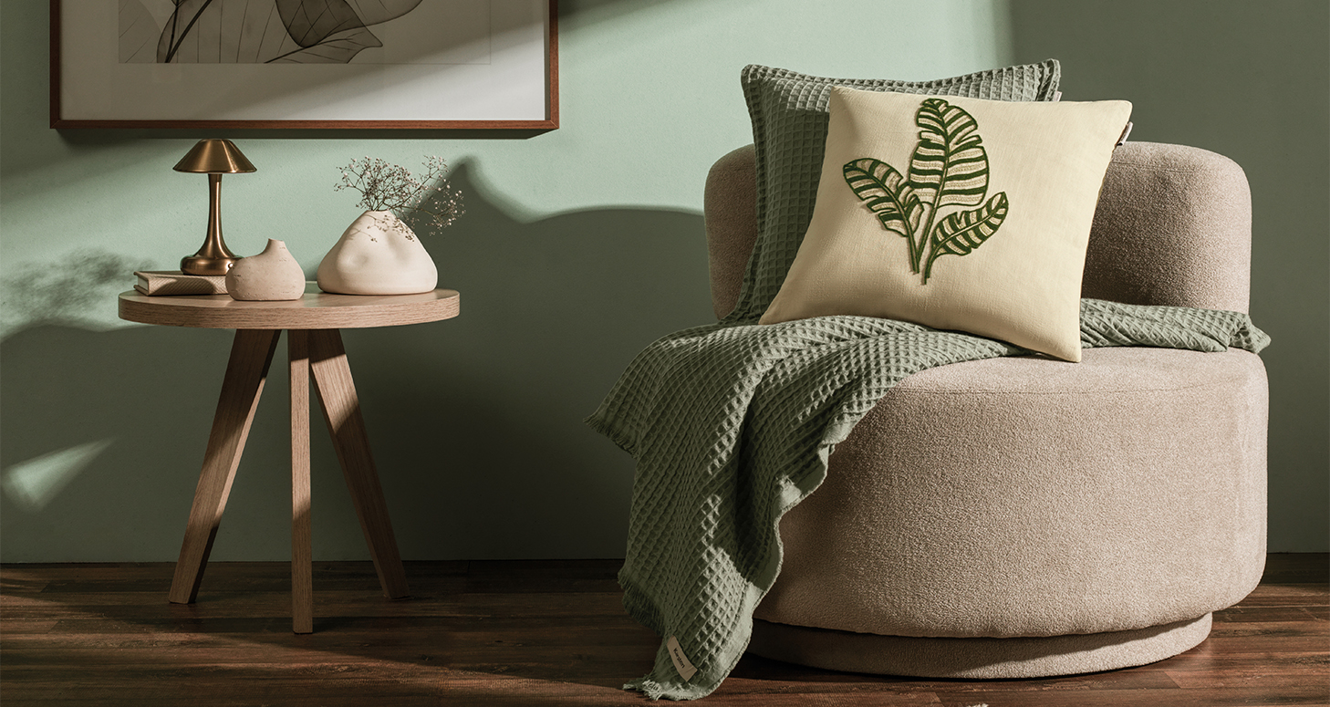 3. Toque de cor com mantas e almofadas