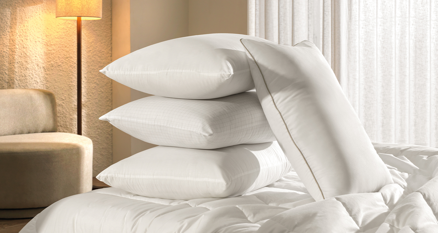Opte por travesseiros com tecido leve, toque suave e propriedades hipoalergênicas.