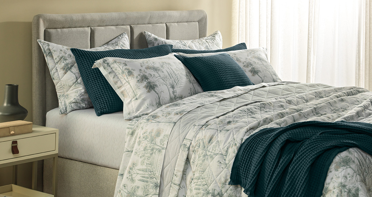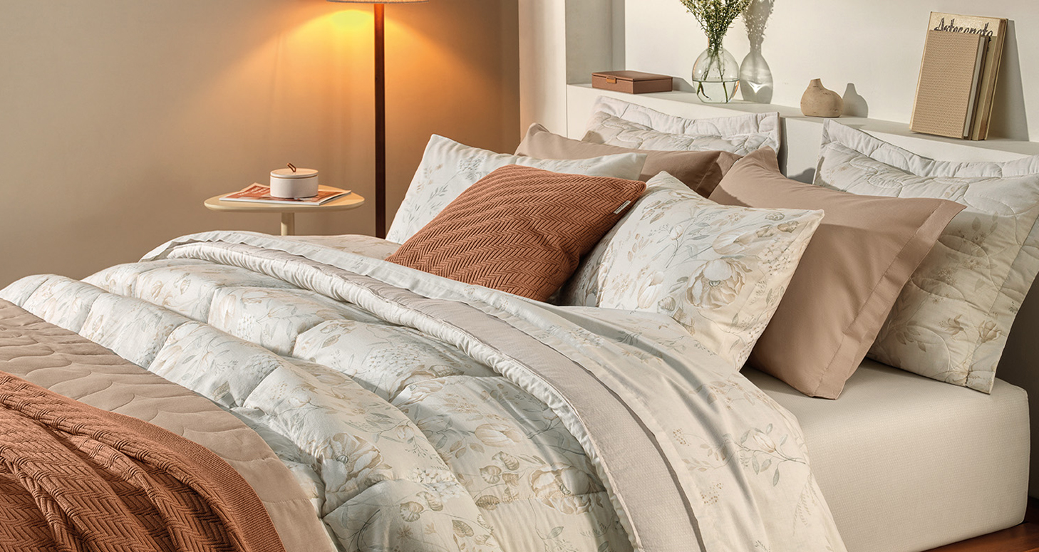 Os jogos de cama de 300 fios são classificados como premium e proporcionam uma experiência ainda mais sofisticada e confortável. Destacam-se pelo toque extremamente macio, sedoso e agradável, além de possuírem resistência superior, mantendo suas características por muito mais tempo. Geralmente confeccionados com algodão egípcio, esses tecidos feitos com 300 fios são classificados como cetim e têm fibras mais longas, proporcionando caimento impecável, sensorial maravilhoso e alta durabilidade, garantindo noites tranquilas e muito aconchegantes.